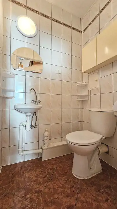 kuchni z jadalnią o powierzchni 7,53 m2, przedpokoju 10,50 m2, łazienki z oknem 3,50 m2 oraz osobnego wc o powierzchni 1,33 m2.