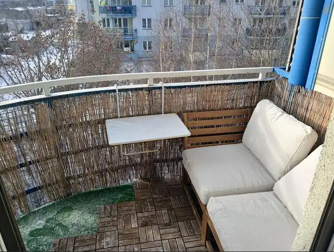 Czynsz na 2-osoby: 935 zł (w tym: duże zaliczki na wodę, duże zaliczki na ogrzewanie, administracja, fundusz remontowy, wywóz śmieci (27 zł od osoby), sprzątanie części wspólnych, prąd części wspólnych, pielęgnacja terenów zielonych wokół budynku). Prąd płatny od zużycia co dwa miesiące.