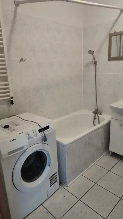 -łazienka z wanną oraz prysznicem (na wyposażeniu pralka),