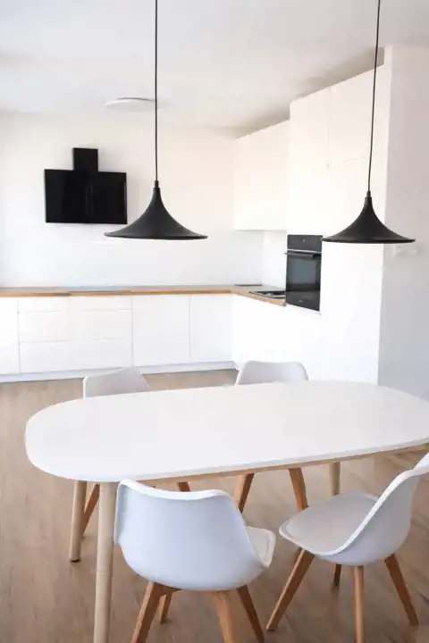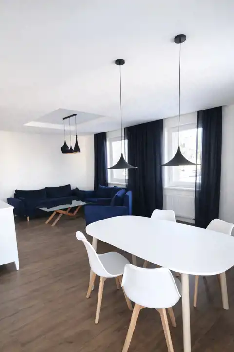Mieszkanie jest w pełni umeblowane i wyposażone w m.in.: pralkę, zmywarkę, lodówkę, płytę indukcyjną, piekarnik oraz telewizor.