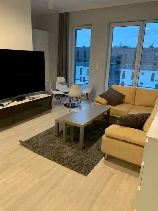 Mieszkanie w apartamentowcu.Teren ogrodzony, monitorowany.Duży taras.Mieszkanie w gustownym, nowoczesnym stylu. bardzo słoneczne, salon z aneksem kuchennym, 2 sypialnie, łazienka z WC. Całkowicie umeblowane.Teren ogrodzony, monitorowany.Parking strzeżony w pobliżu bloku.Blisko market, komunikacja miejska.Miejsce parkingowe pod budynkiem za dodatkowa opłatą.