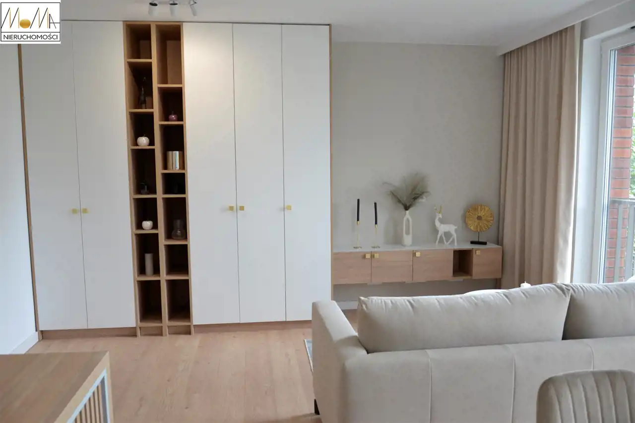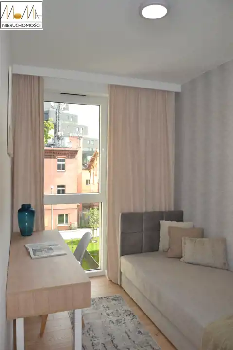 Mieszkanie nowoczesne, bardzo jasne z funkcjonalnym układem. Mieszkanie posiada salon z aneksem z wyjściem na balkon, oddzielną sypialnię i dodatkowy pokój oraz łazienkę. Duża szafa do przechowywania w sypialni oraz holu.