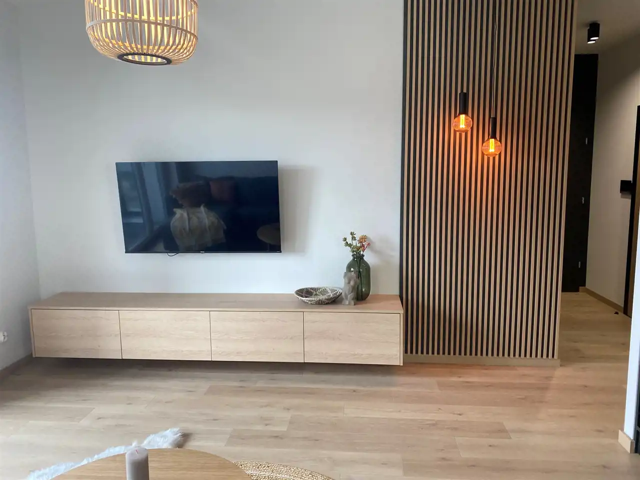 W salonie z aneksem kuchennym, łazience i wc jest ogrzewanie podłogowe.