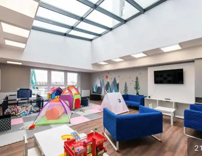 Dodatkowo mini marina i siłownia, a dla dzieci plac zabaw wewnętrzny i zewnętrzny.