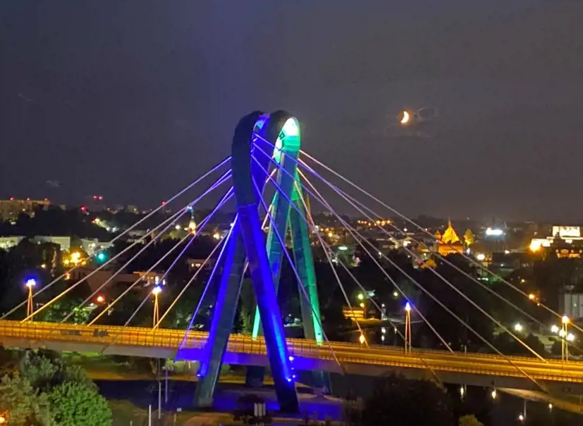 W dzień i w nocy można delektować się z okien i tarasu pięknym widokiem na panoramę miasta.