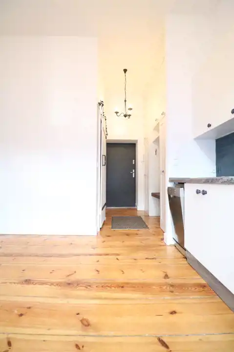Mieszkanie ma wyjątkowy klimat – piękna stolarka drzwiowa i deski na podłodze nadają mu niepowtarzalny charakter. Apartament został wykończony z dbałością o detale, wymieniono instalacje elektryczne i wod.-kan.