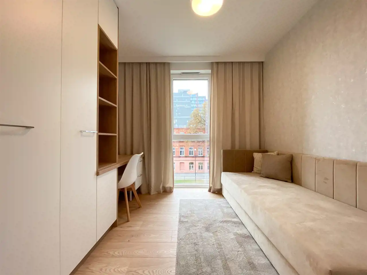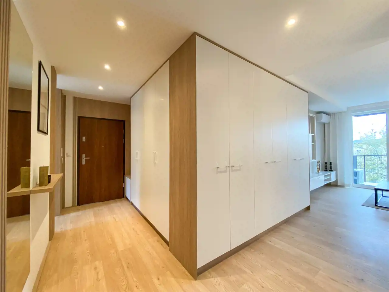 Mieszkanie nowoczesne, bardzo jasne z funkcjonalnym układem i wieloma szafami do przechowywania. Mieszkanie posiada salon z aneksem z wyjściem na balkon, oddzielną sypialnię i 2 dodatkowe pokoje oraz łazienkę z prysznicem. Pojemne szafy z regałami do przechowywania w salonie, sypialni oraz holu.