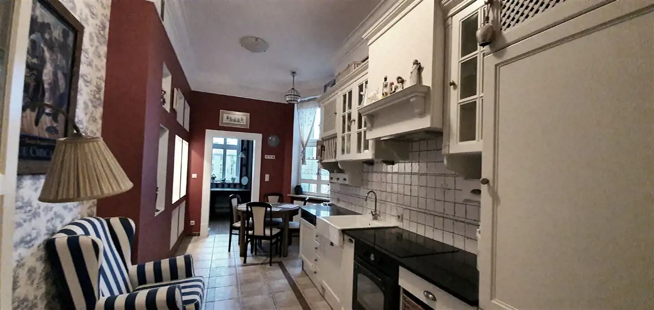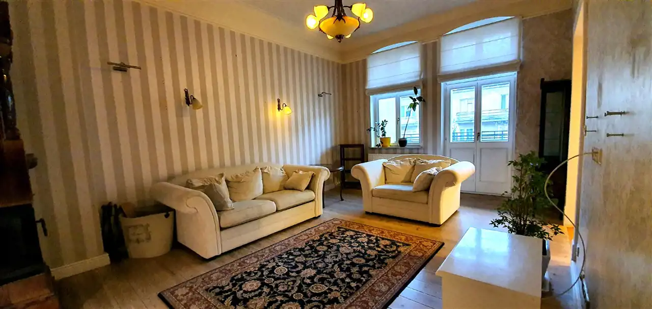 Mieszkanie bardzo przestronne, klimatyczne w pięknej kamienicy składa się z pokoju dziennego, 2 sypialni oraz osobnej kuchni z jadalnią i łazienki (razem 100 m2 ). Bardzo wysoki standard wykończenia, Mieszkanie w całości umeblowane wraz ze sprzętem AGD (zmywarka, pralka ,piekarnik, płyta, lodówka) Ogrzewanie gazowe - piec dwu funkcyjny.