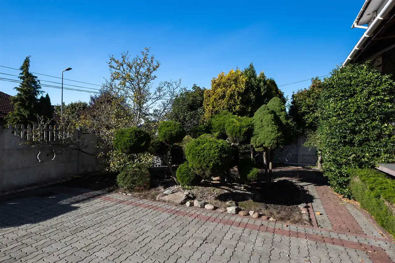 Działka o powierzchni 679m2, ogrodzona, podjazd wyłożony kostką, wiata na samochód.