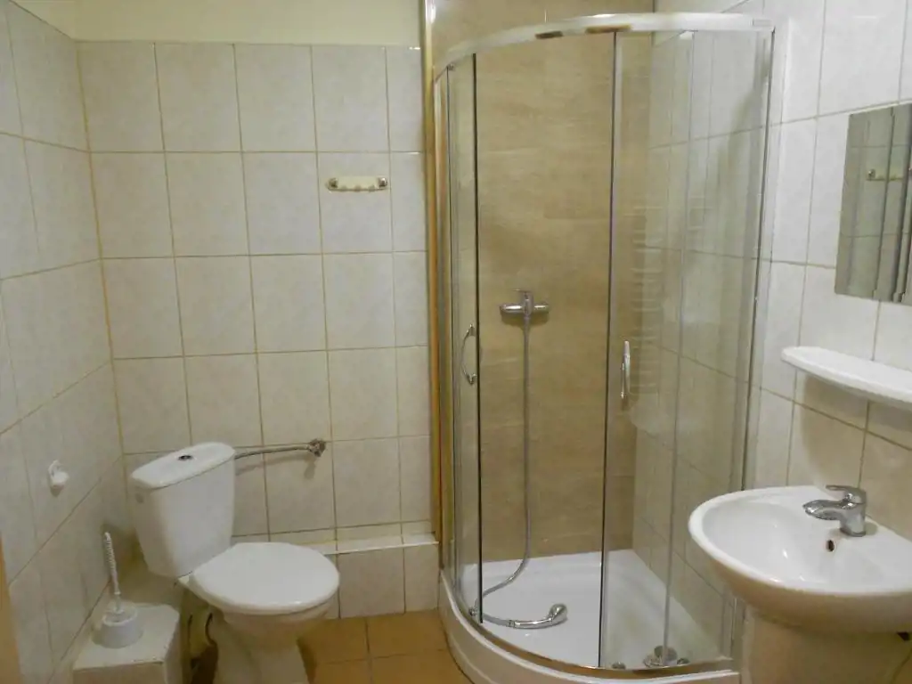 Łazienki - zarówno prywatne w pokojach, jak i wspólne na korytarzach,
