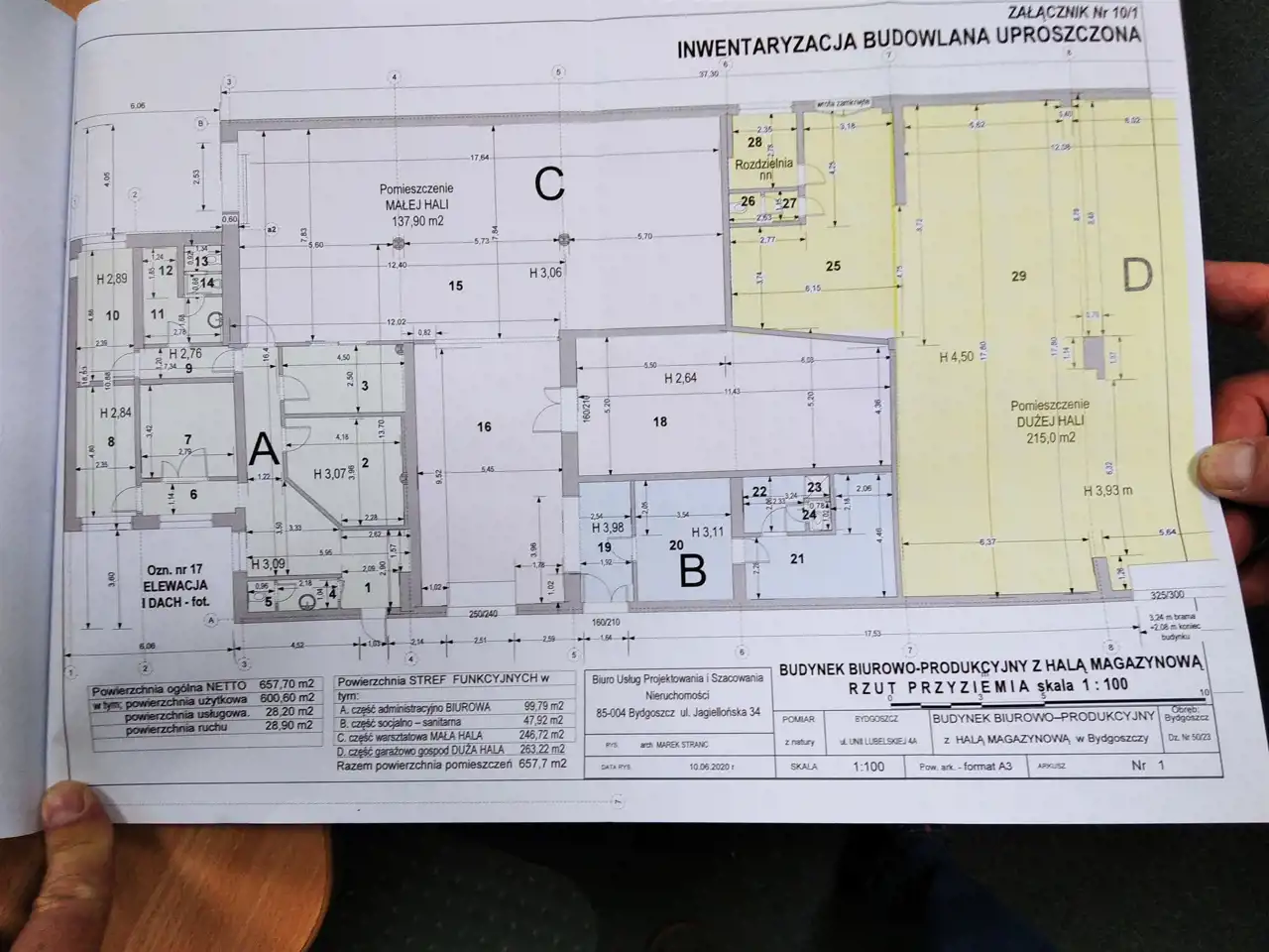 - części magazynowej, produkcyjnej (wysokość, 3,5 i 4,5 m) dwie hale 247 m2 i 243 m2,