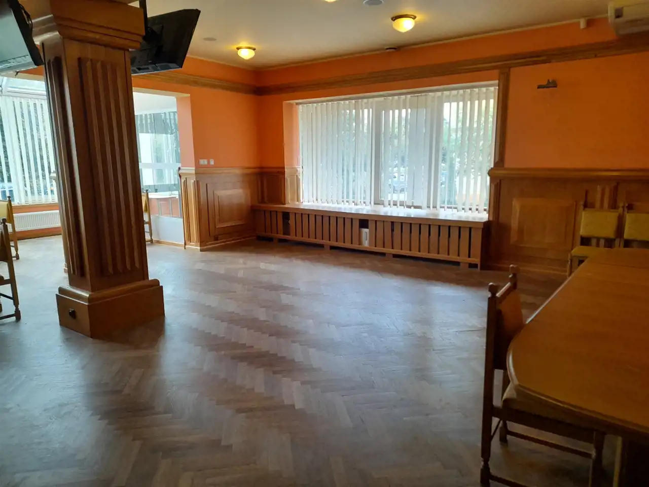 Lokal składa się z 11 pomieszczeń o różnej wielkości oraz przeznaczeniu,są w nim 2 sale wykładowe,biura oraz 3 pomieszczenia socjalne i wc,komunikacja.
