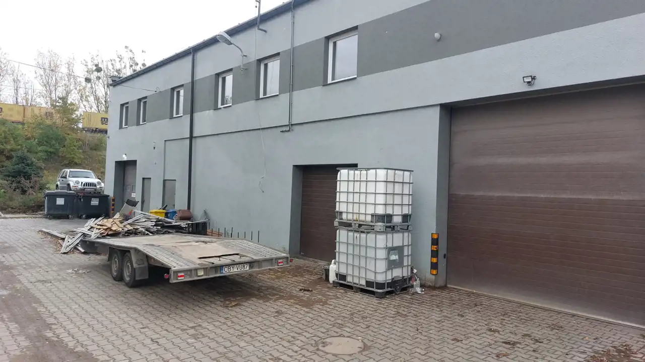za budynkiem dodatkowa przestrzeń użytkowa – idealna na składowanie materiałów, produktów lub parkowanie sprzętu (np. wózek widłowy).