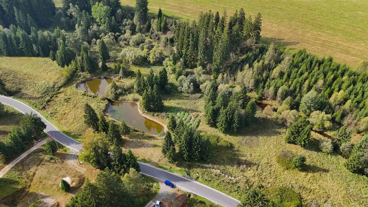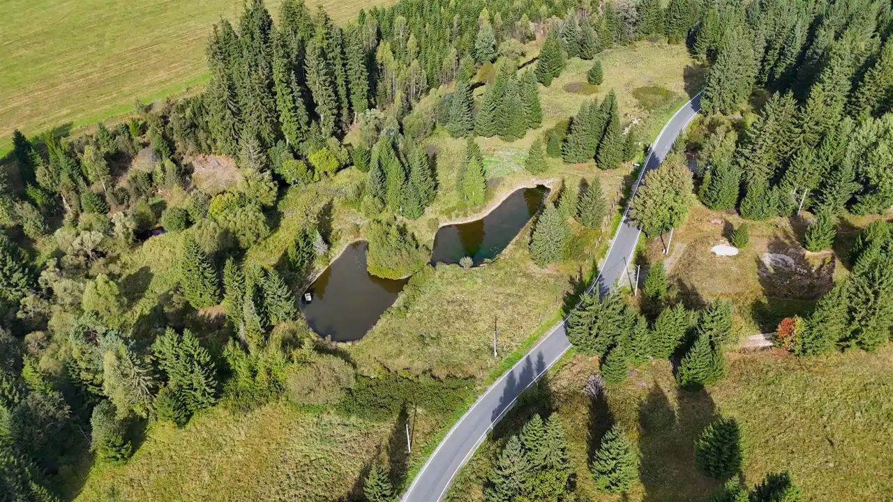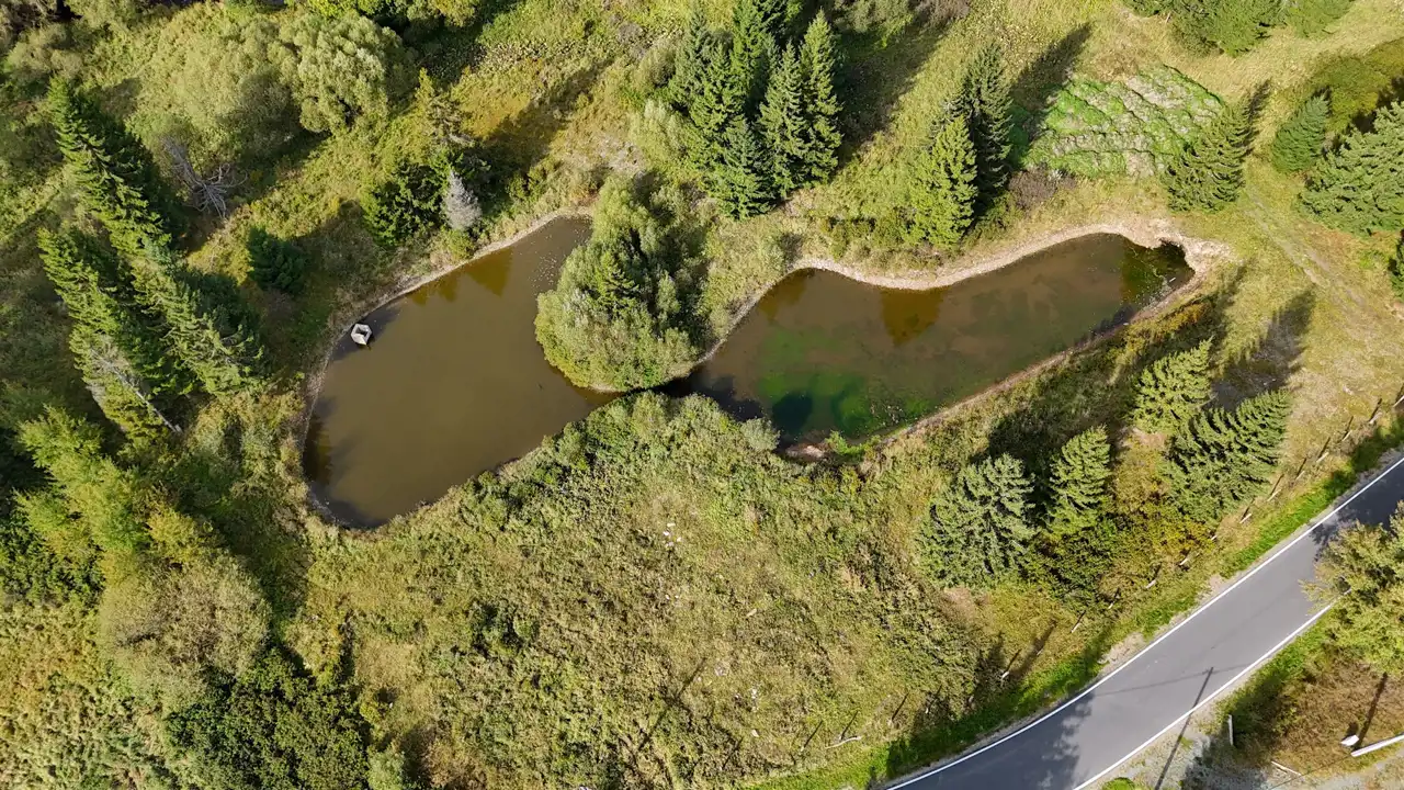 Na terenie znajdują się dwa połączone stawy, stanowiące unikalny element krajobrazu i potencjał dla rybackiej działalności.