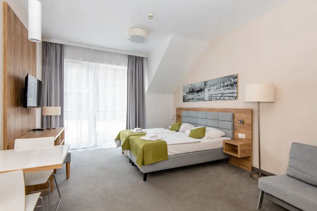 - infrastruktura: strefa Wellness&Spa, basen wewnętrzny z widokiem na góry, brodzik dla dzieci, jacuzzi oraz bicze wodne, saunarium, restauracja, sale konferencyjne, sale bankietowe, lobby bar, sala gier, recepcja