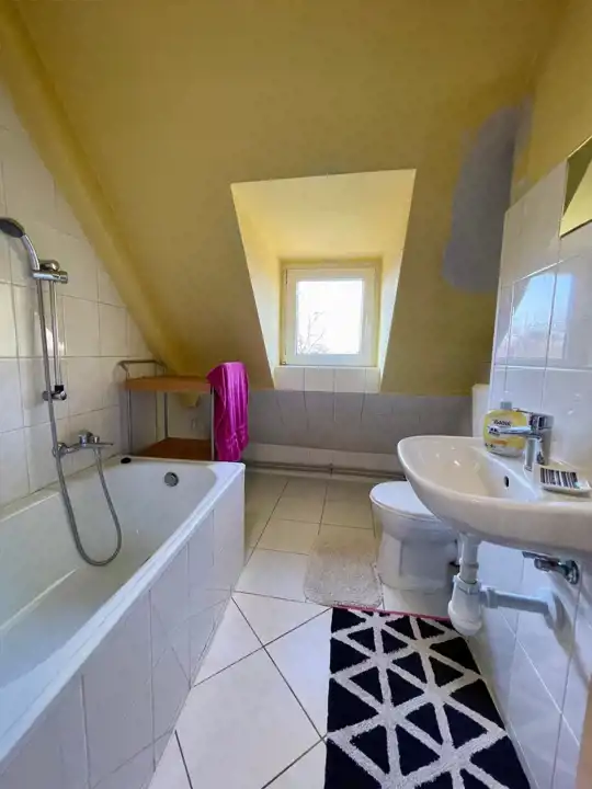 + odświeżone wnętrza – ściany gipsowe, panele, kafelki, pod nimi drewno.