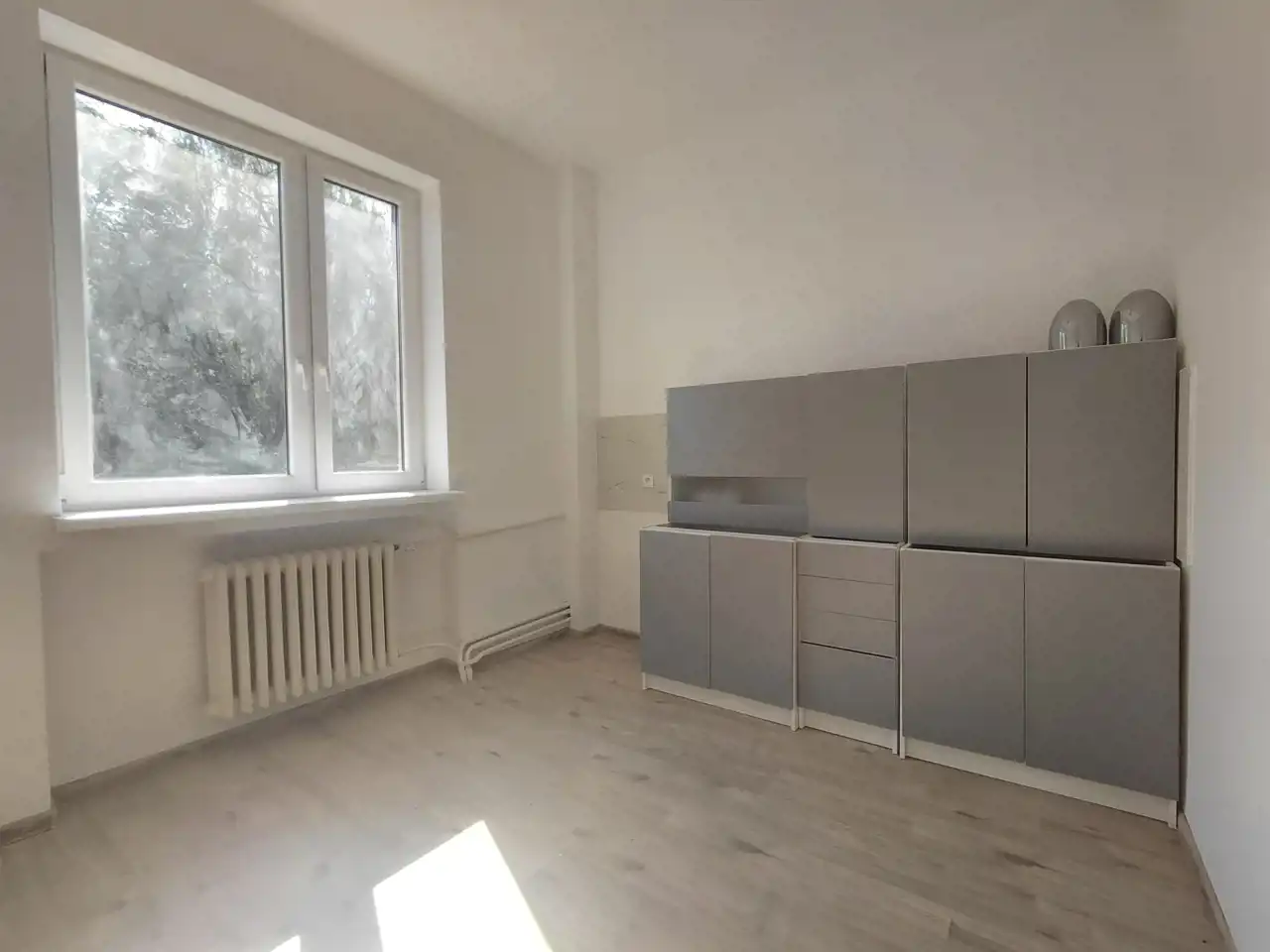 Mieszkanie składa się z jasnego pokoju, bardzo dużej, funkcjonalnej kuchni w nowej zabudowie, łazienki z WC i kabiną prysznicową. Lokal świeżo po remoncie – wymienione zostały wszystkie instalacje, zamontowano nowe okna, a wykończenie wnętrz wykonano w nowoczesnym, neutralnym stylu.