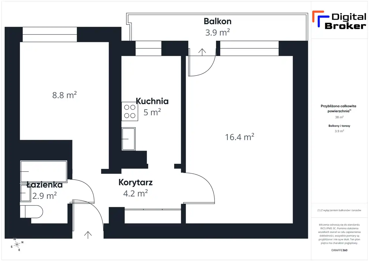- Charakterystyka mieszkania 39 m2, 2 pokoje