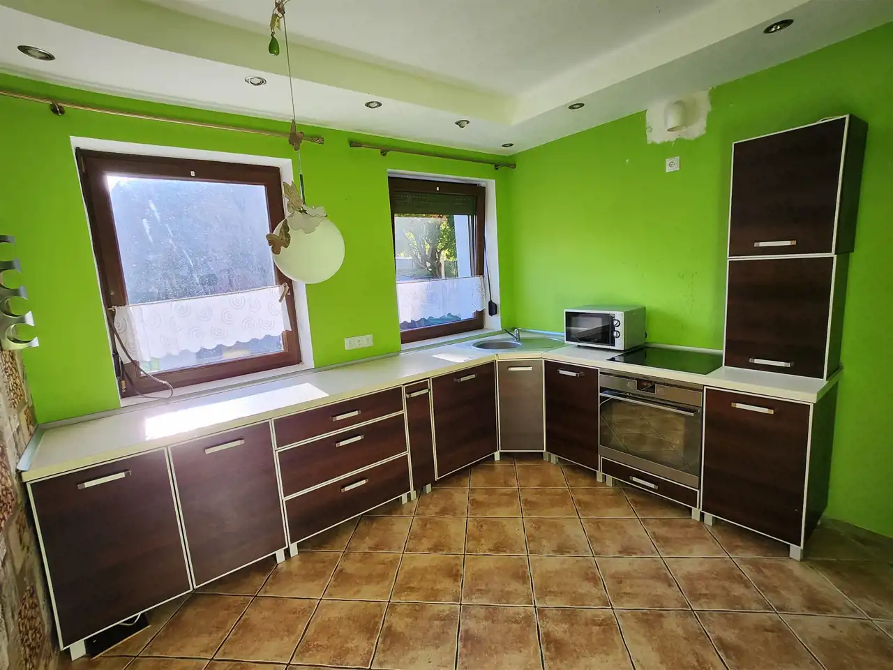 dużej kuchni z wyposażeniem (płyta grzewcza, piekarnik, zmywarka),