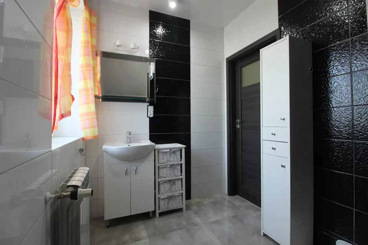 -Woda zimna- miejska, ciepła - z pieca; w sezonie letnim - grzałka elektryczna zainstalowana w piecu;