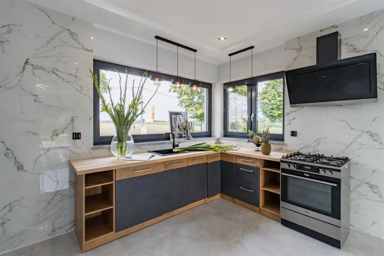 - Okna: parter Veka, tarasowe HS z systemem przesuwnym, bezprogowym, dachowe Roto.