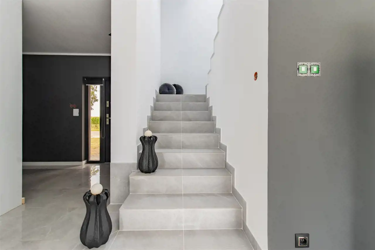 - Kolorystyka budynku spójna i elegancka: biel i grafit.