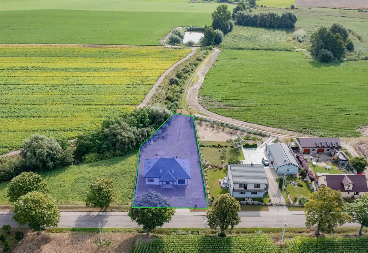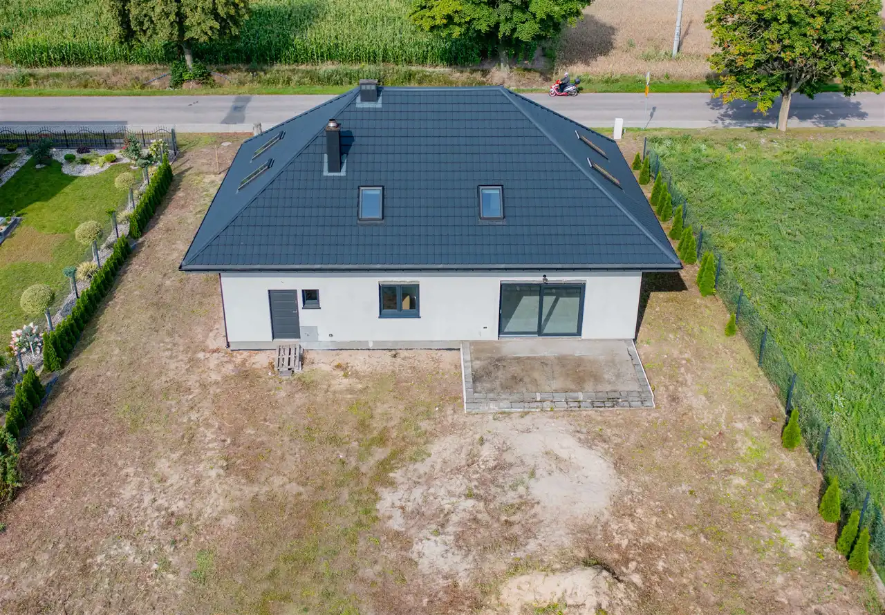 Zastosowane okna dachowe optyczne powiększają pomieszczenia i zapewniają nasłonecznienie. Działka o powierzchni 1531 m² daje szerokie możliwości aranżacyjne: ogród, przestrzeń rekreacyjną, uprawę lub dalszą zabudowę.