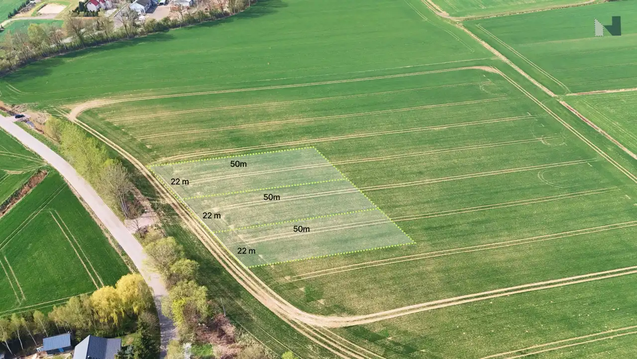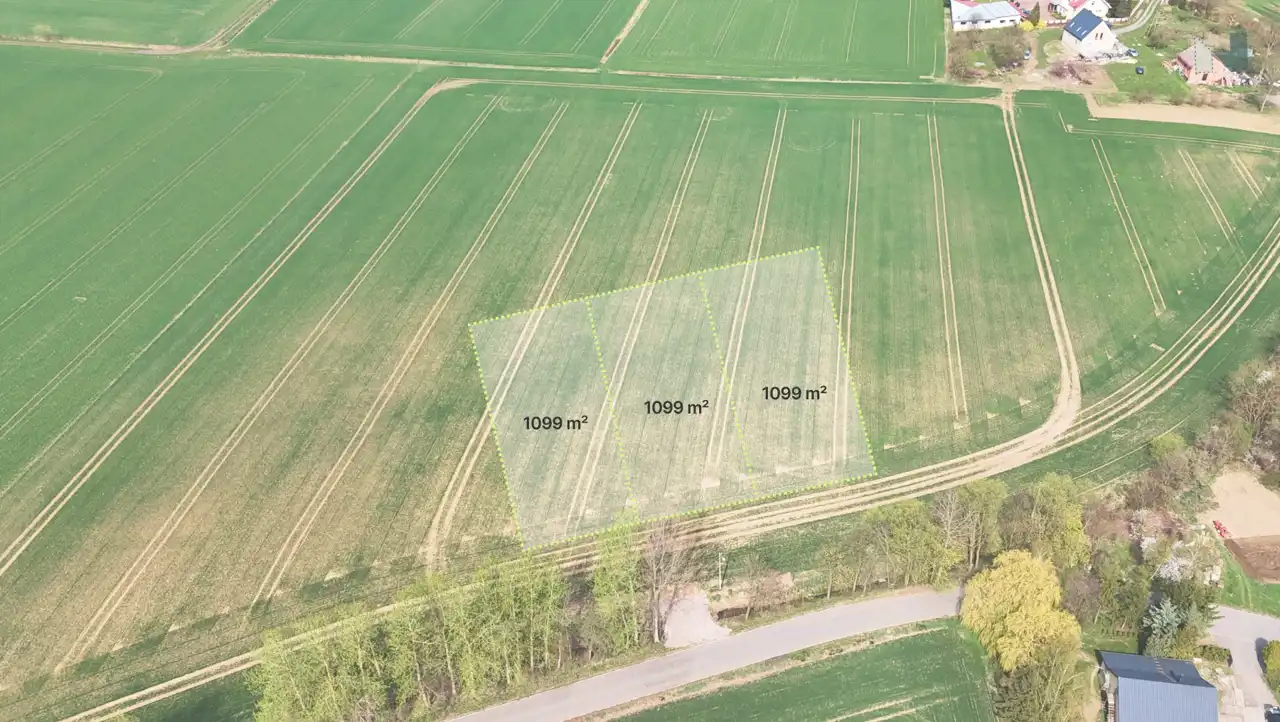 Każda z działek ma powierzchnię 1099 m² i foremny, prostokątny kształt o wymiarach 22 metry szerokości na 50 metrów długości. Działki są płaskie, co znacznie ułatwia proces budowy.