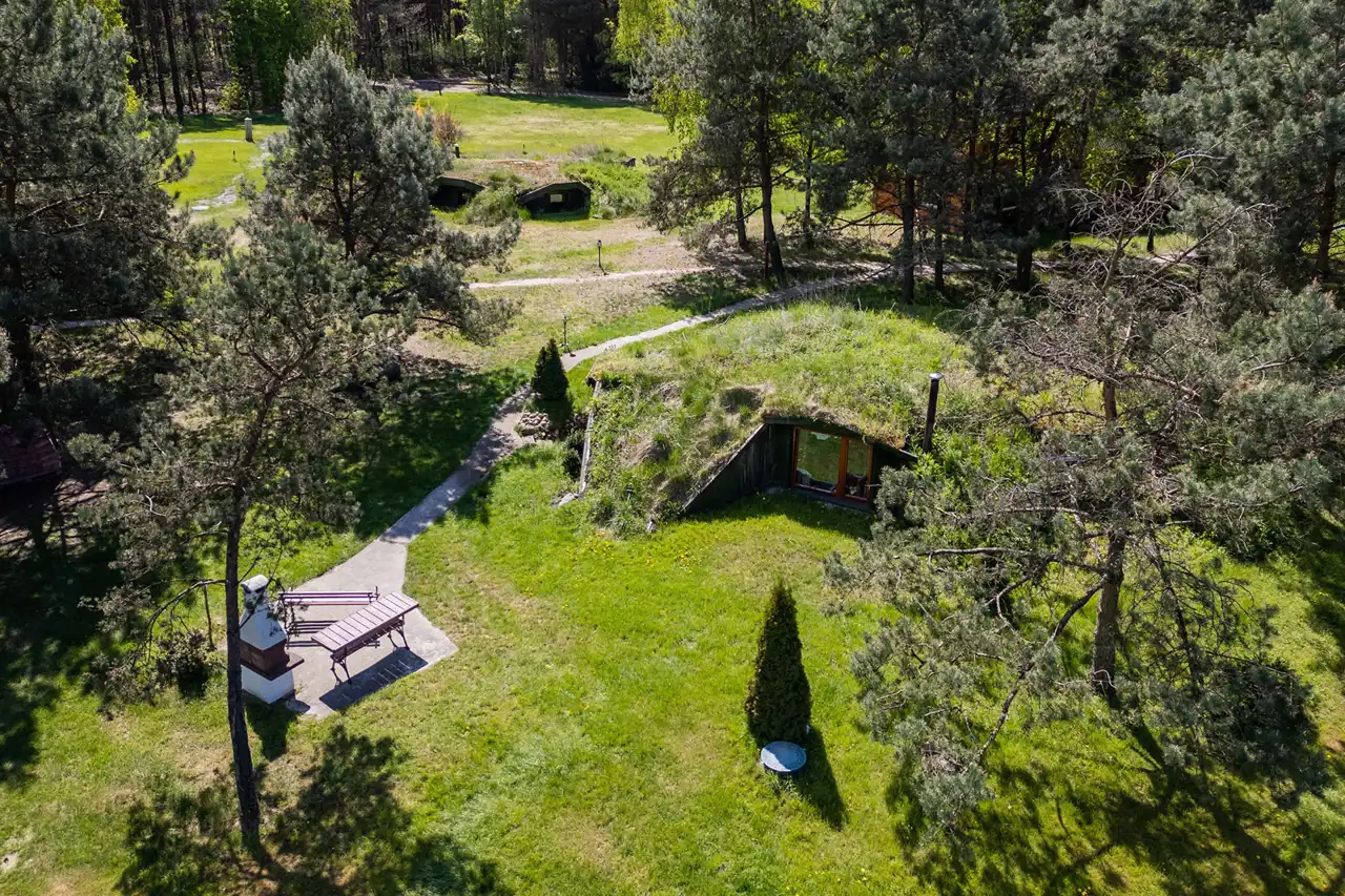 - komfortowe, unikalne całoroczne warunki noclegowe - 7 domków, tzw. "chaty krasnoludów i hobbitów" z kominkami, do których natura wdziera się każdym oknem. Ponadto dom mieszkalny "Matka" o powierzchni ok. 370 m2 w którym są dodatkowe 4 pokoje oraz sala restauracyjna, magazynek, biuro itd. Łącznie 60 miejsc noclegowych.