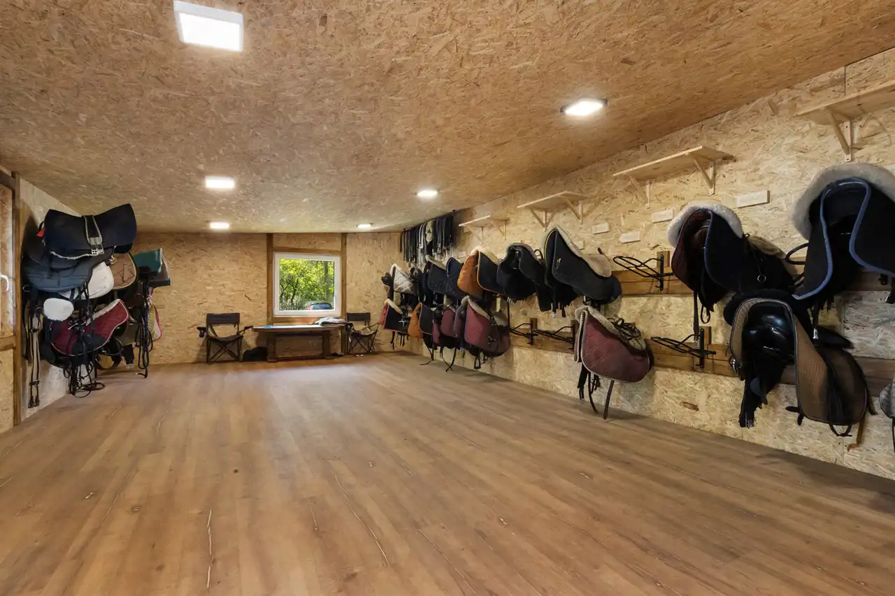 - pełna infrastruktura jeździecka: stajnia, ujeżdżalnia, padoki i parkury dla koni, nowa siodlarnia, możliwość hotelowania koni. W ośrodku zatrudniony jest instruktor jazdy