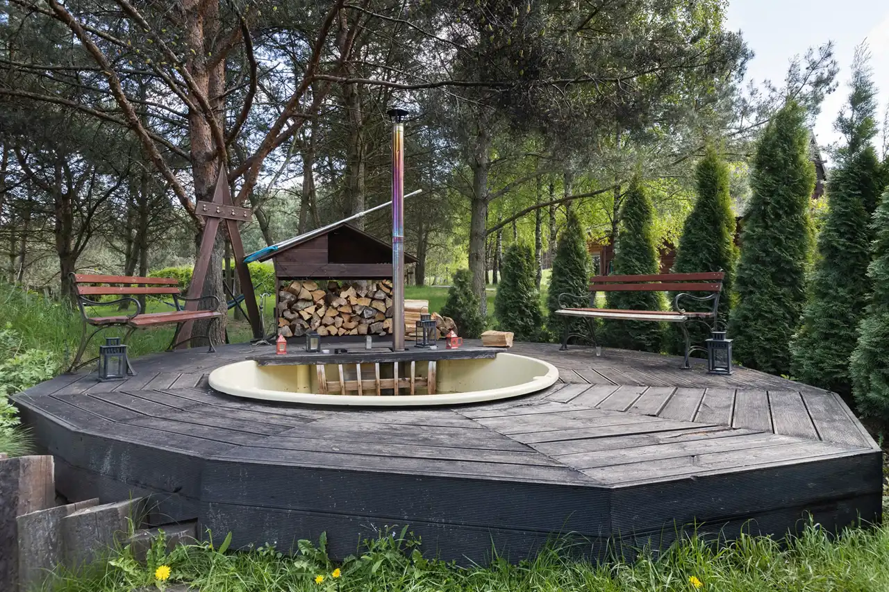 - Mini - Spa: wspaniała przestronna bania do kąpieli w gorącej wodzie pod gołym niebem oraz nowa sauna, siłownia