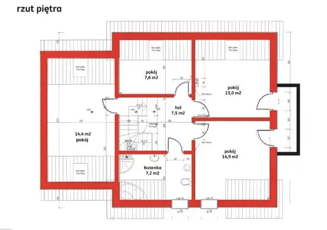 - ściany na parterze i piętrze wykończone tynkiem cementowo- wapiennym,