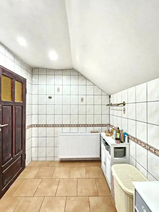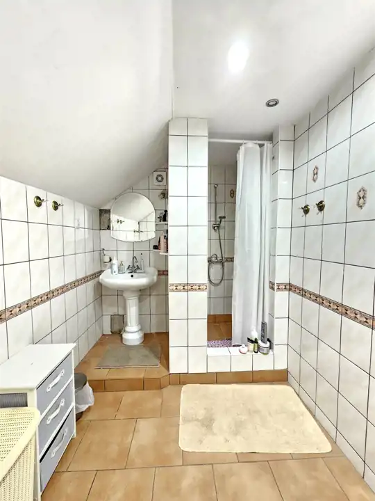 Łazienka z prysznicem i wanną (obecnie pełni funkcję pralni)