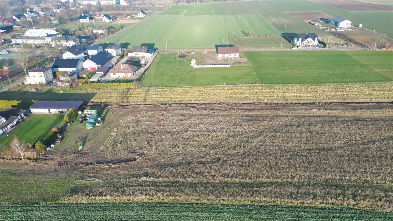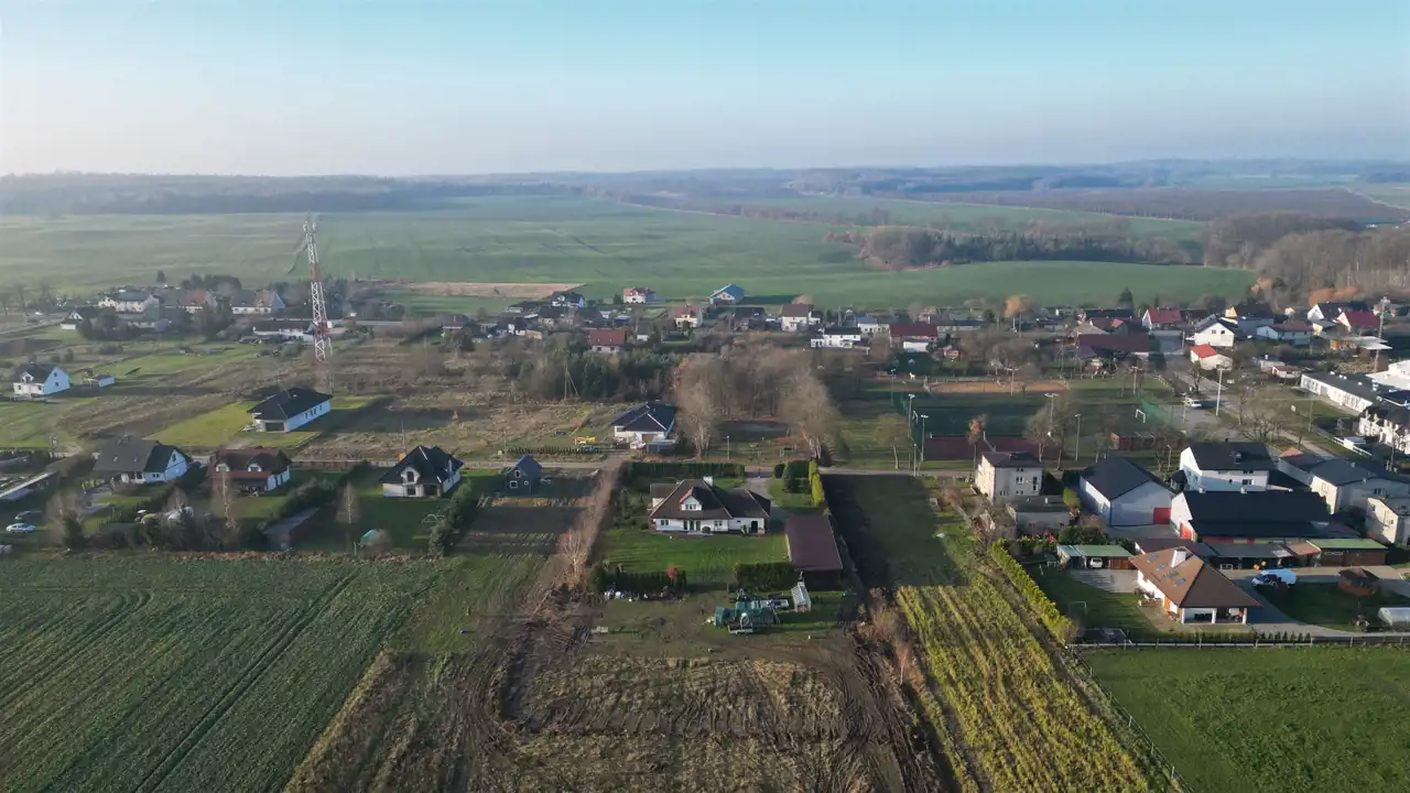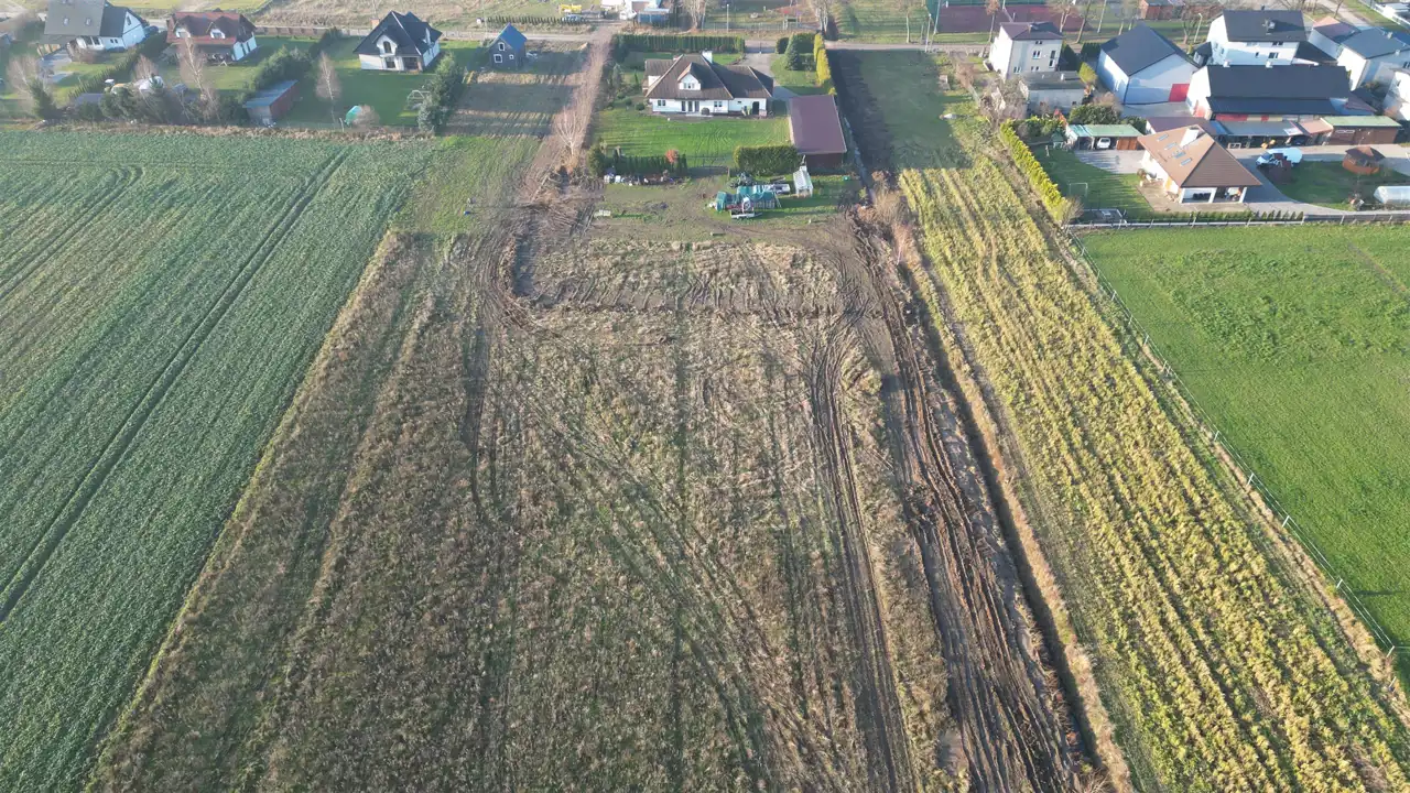 Nie jest objęta MPZP, jednak na sąsiednie działki zostały już wydane warunki zabudowy. Bezpośrednio przy granicy działki znajdują się media (prąd, woda), co dodatkowo zwiększa jej atrakcyjność i obniża koszty uzbrojenia działki.