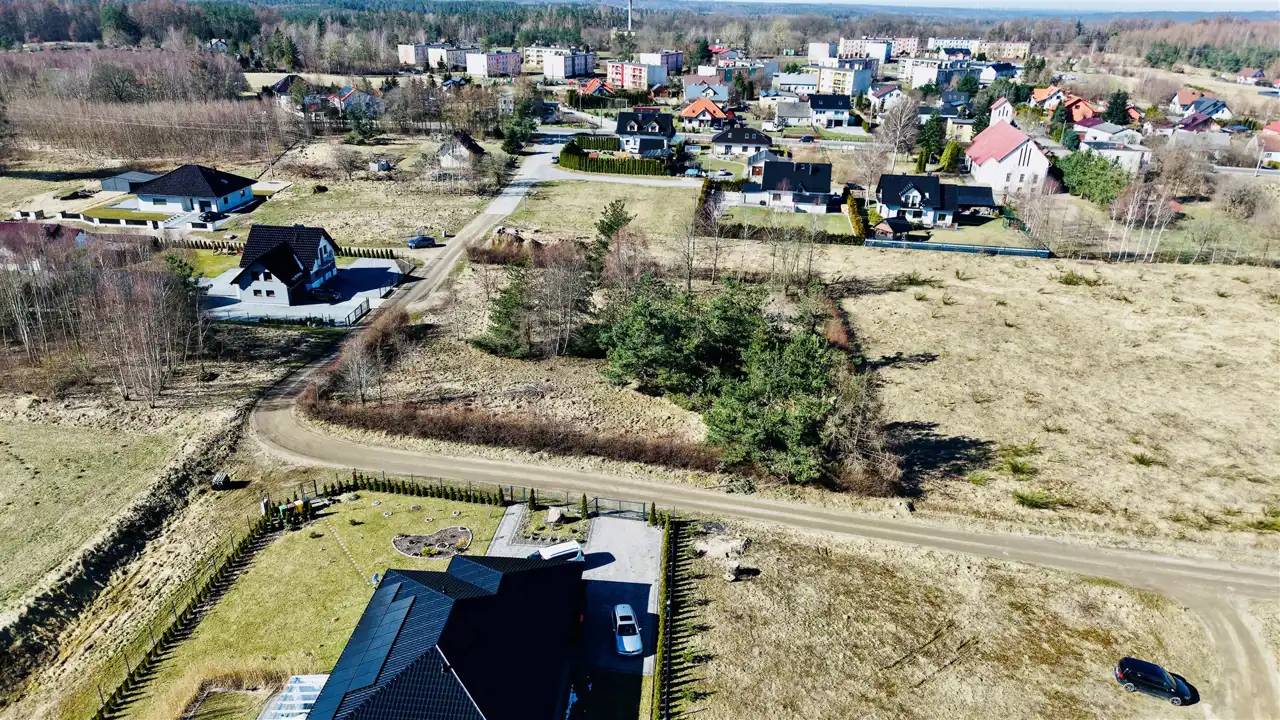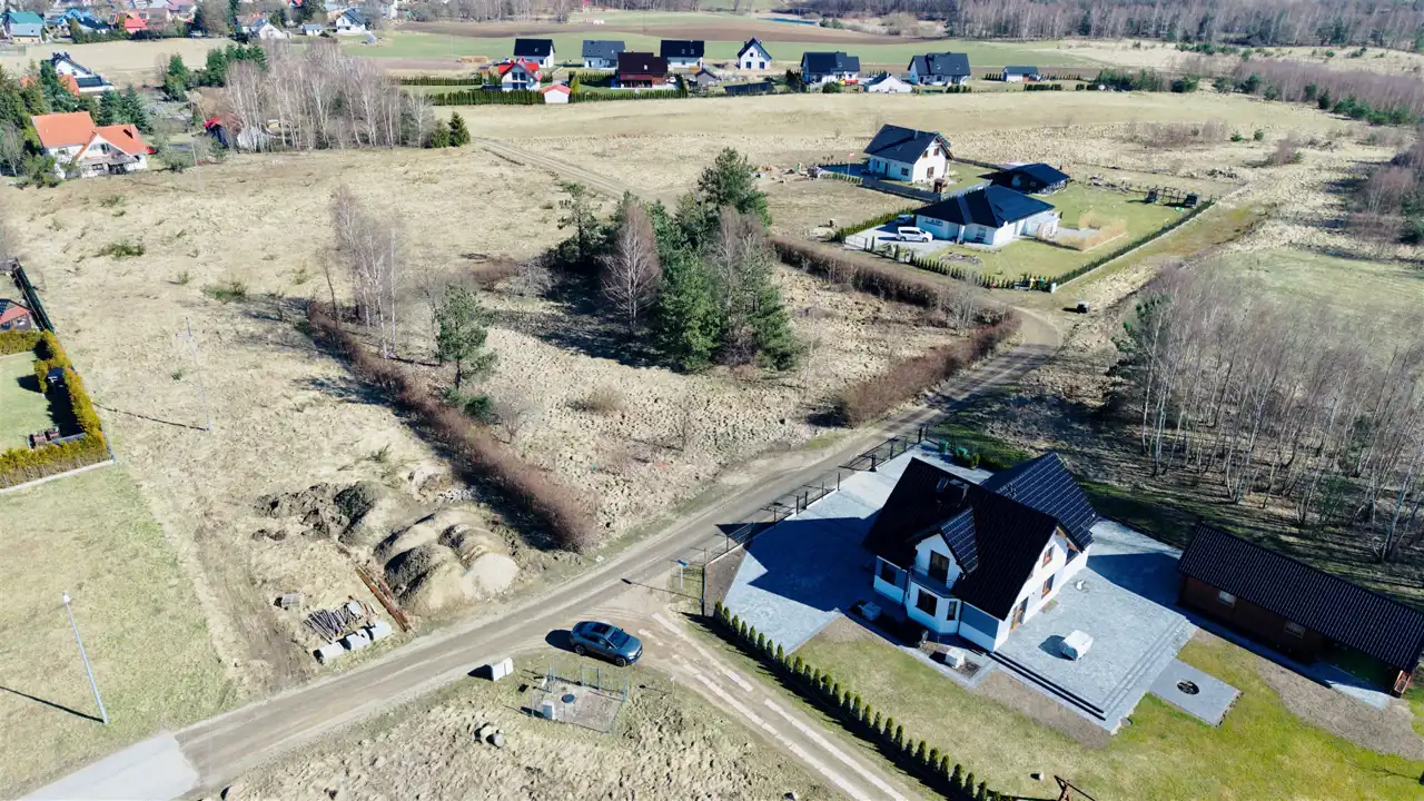- Powierzchnia – 3800 m², idealna zarówno pod dom jednorodzinny, jak i działalność gospodarczą