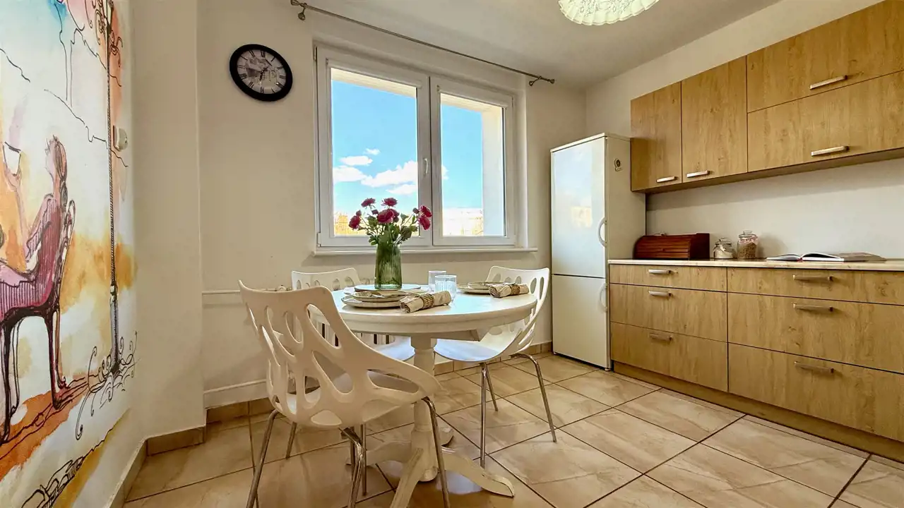 Głównym atutem mieszkania jest jego unikalne położenie – z okien oraz balkonu rozpościera się kojący widok na pobliski las, co gwarantuje prywatność oraz bliskość natury bez konieczności rezygnacji z miejskiej infrastruktury.