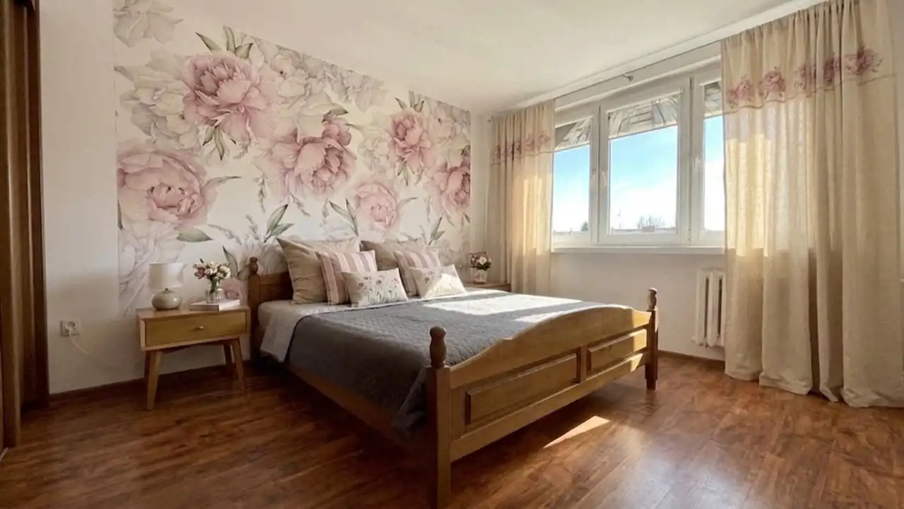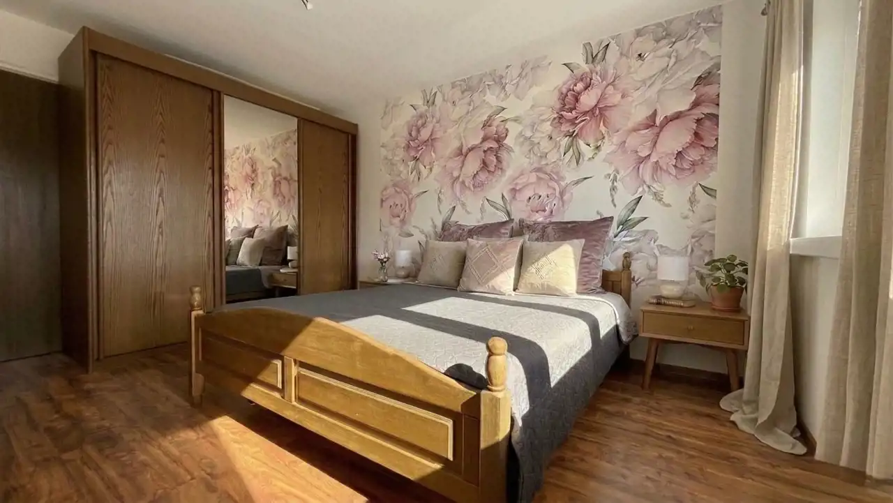 Sypialnia Master: Cicha i przestronna, wyposażona w dużą szafę garderobianą.