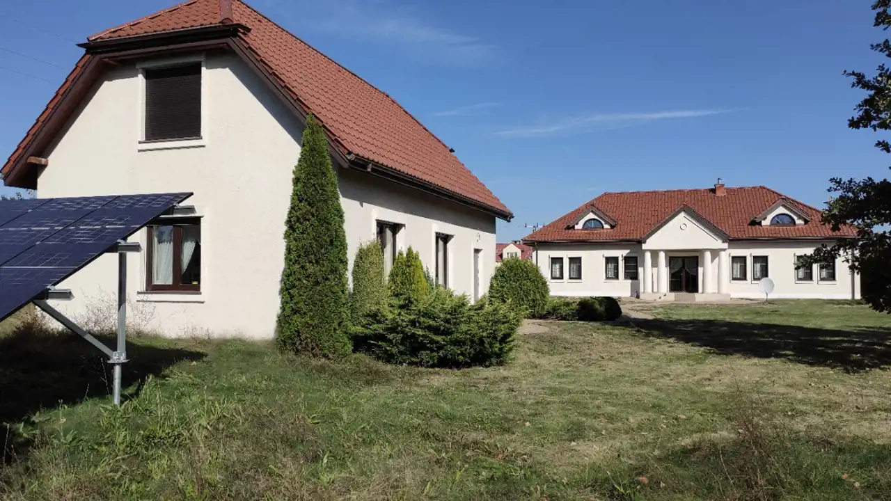 - Media Ogrzewanie: pompa ciepła; Woda: studnia; Kanalizacja: własna oczyszczalnia; Prąd: w budynku; Gaz: na działce