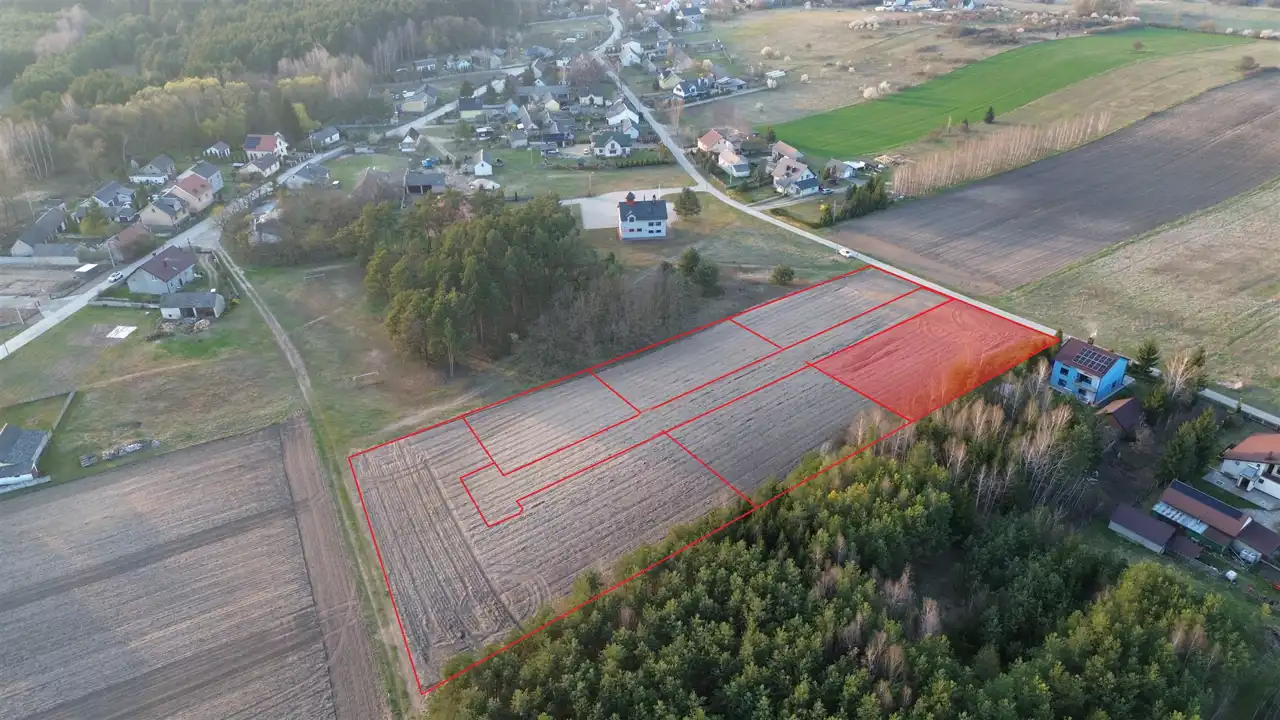 Istnieje możliwość zakupu sąsiednich działek w kolejnych liniach od drogi o powierzchniach 1100 m2 lub 3582m2 (w ostatniej linii).