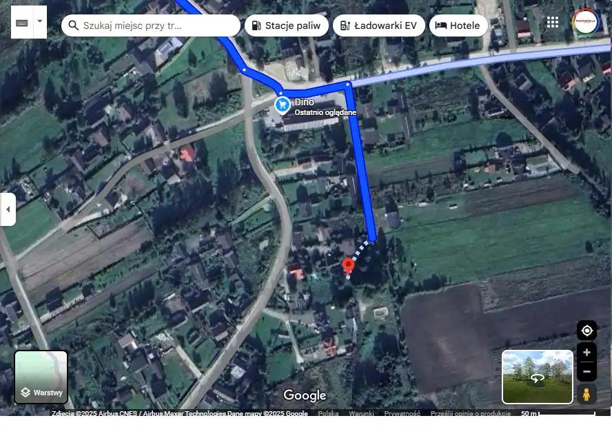 prąd – w drodze przy działce (słup niskiego napięcia na sąsiedniej działce),