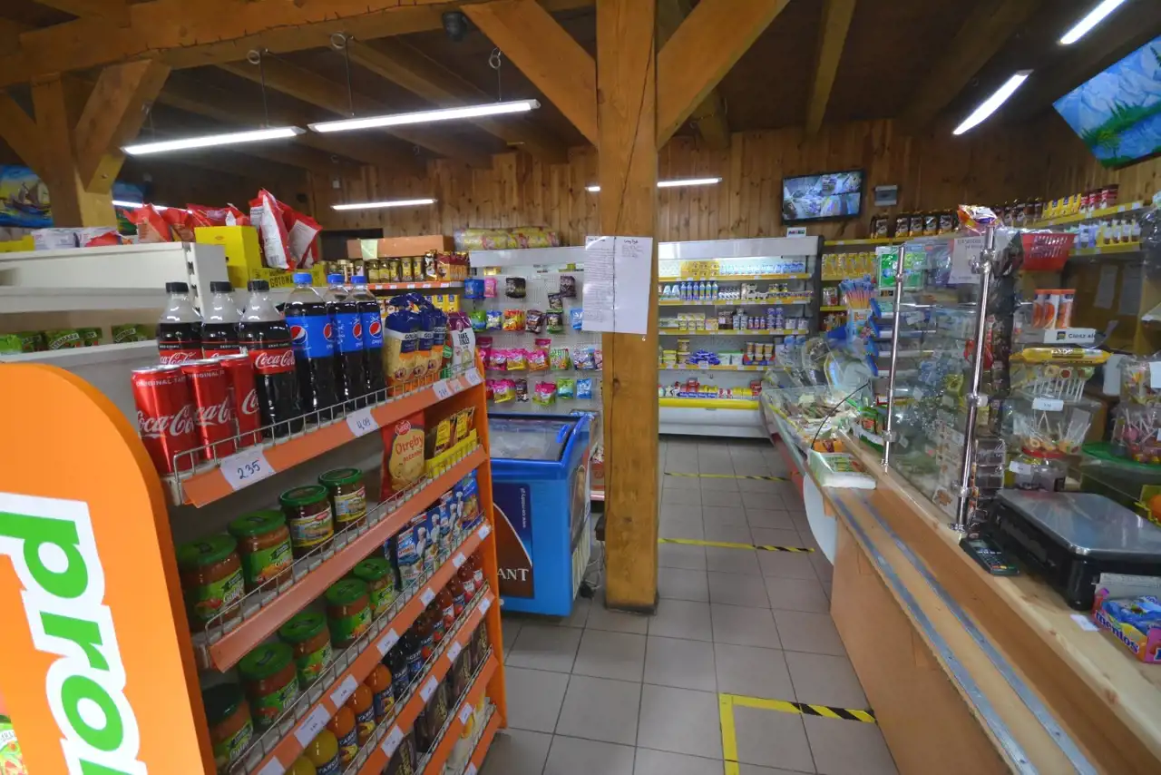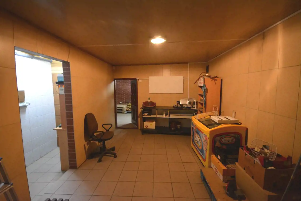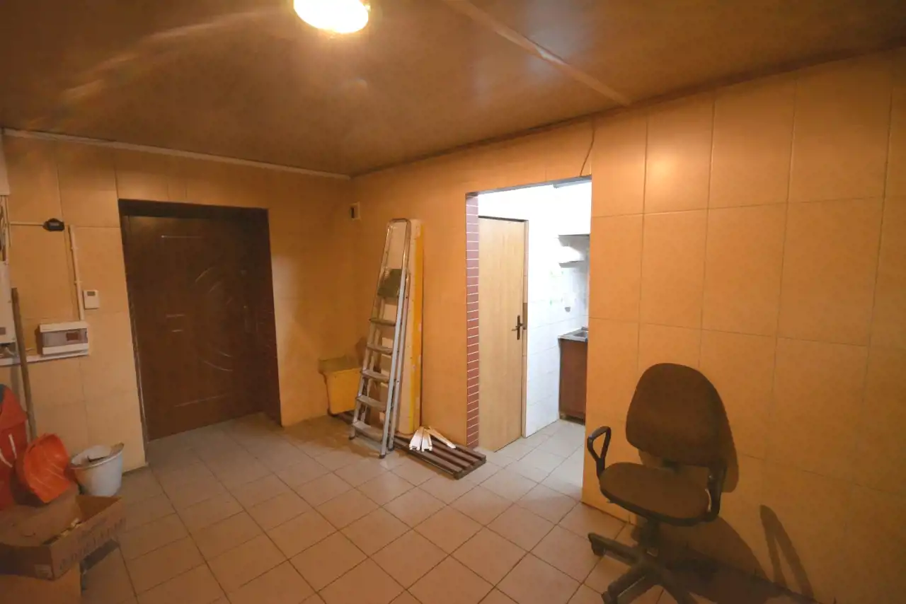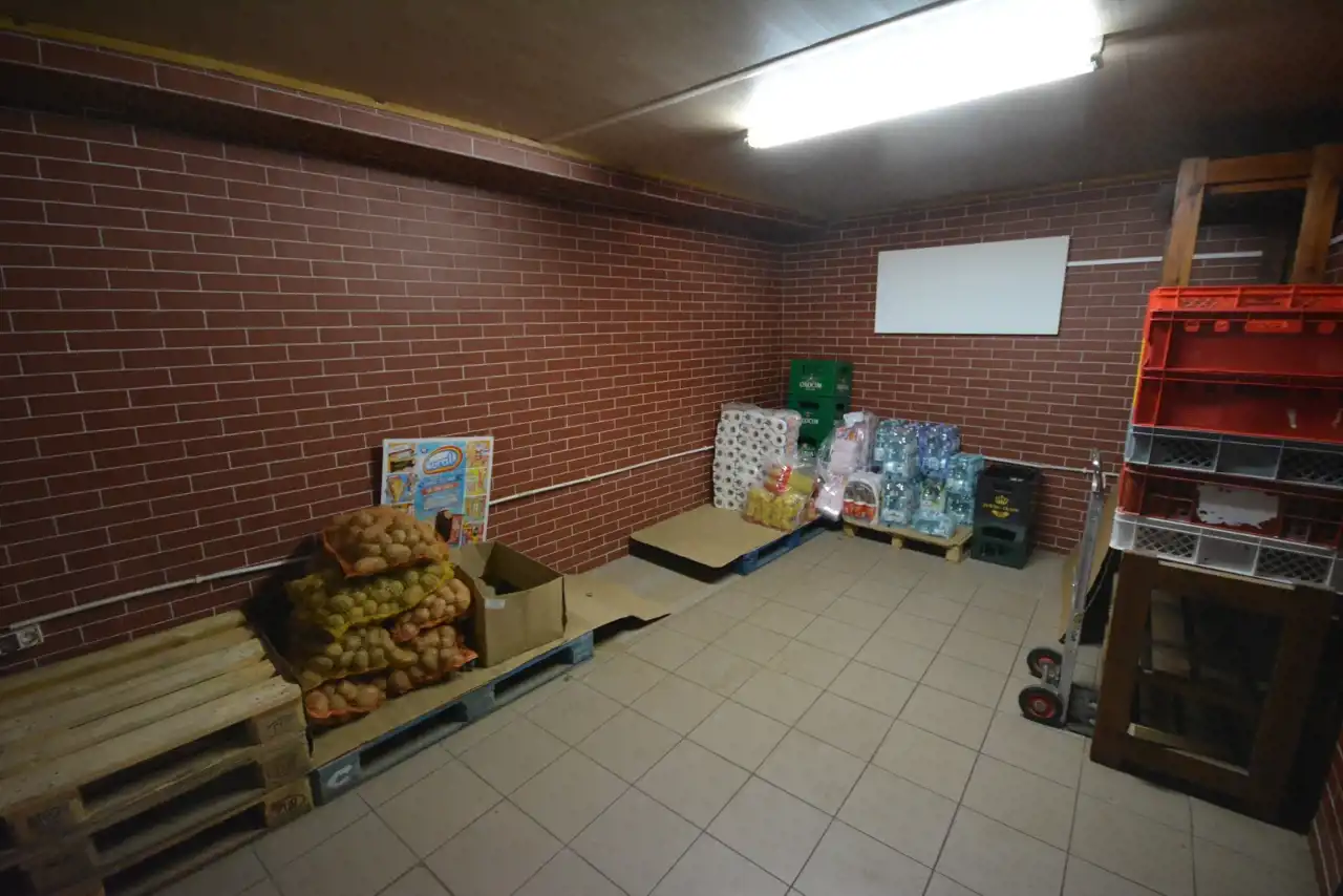 The property underwent a complete renovation in 2013/2014 and was adapted for commercial use. The ground floor consists of a main sales area of approximately 66 sqm, two storage rooms with a total area of approximately 34 sqm, and a bathroom with an area of 8 sqm. The first floor comprises a kitchenette combined with a large living room, a bedroom, and a bathroom.