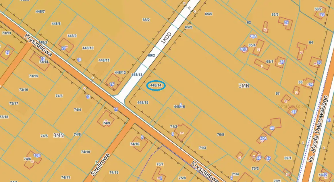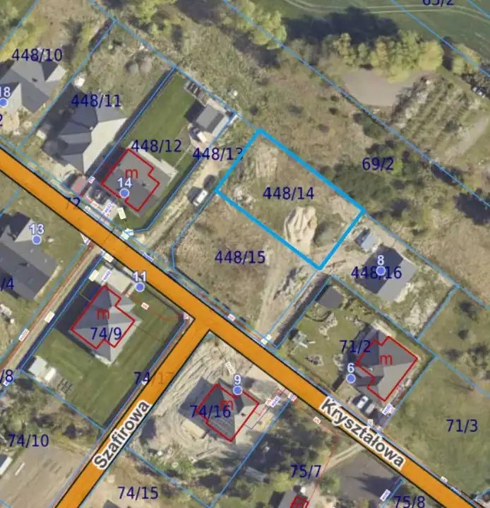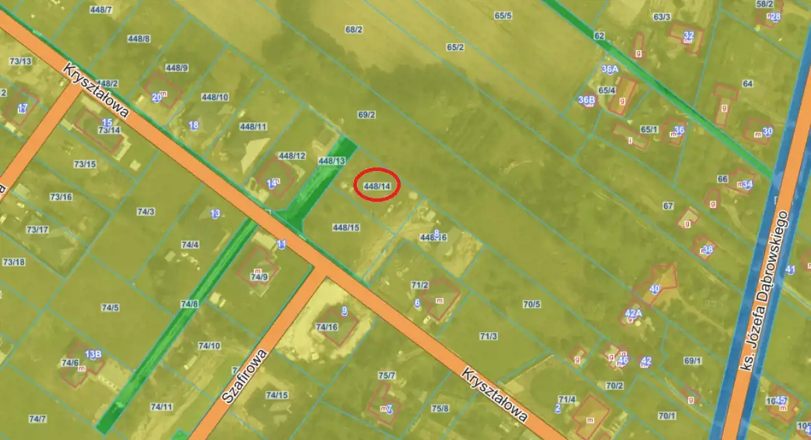Druga linia zabudowy od asfaltowej ul. Kryształowej, dojazd ulicą 10-metrowej szerokości, która powstanie tu w przyszłości.