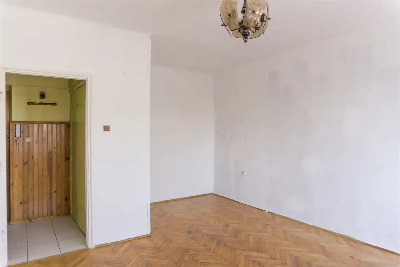 Mieszkanie usytuowane jest na drugim piętrze bloku, składa się z pokoju, kuchni, przedpokoju, łazienki z wc. Mieszkanie daje spore możliwości aranżacyjne, ale wymaga remontu.