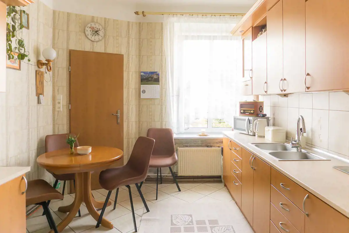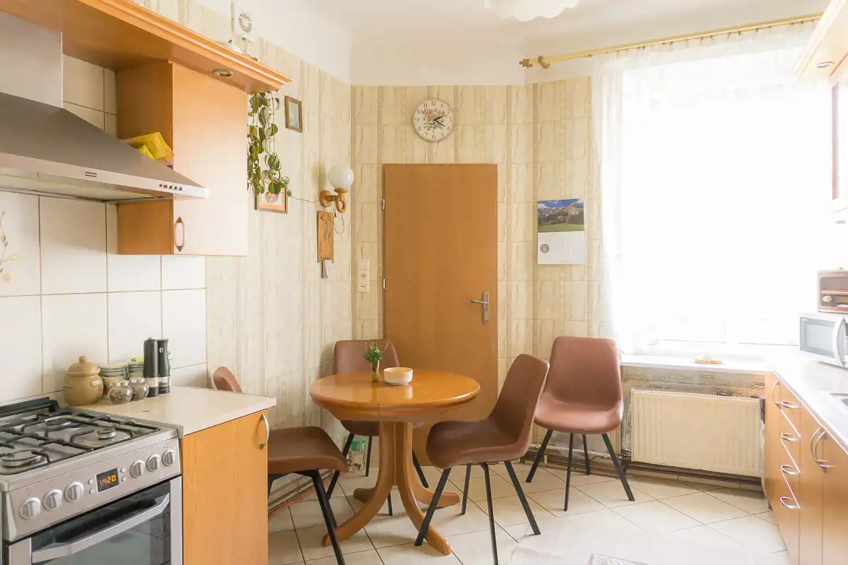 Mieszkanie usytuowane na pierwszym piętrze bloku kolejowego, składa się z trzech pokoi, kuchni, łazienki z WC, przedpokoju oraz spiżarki.