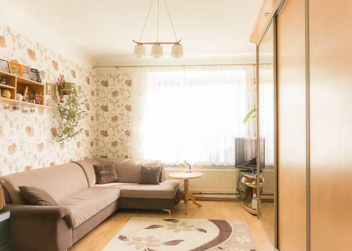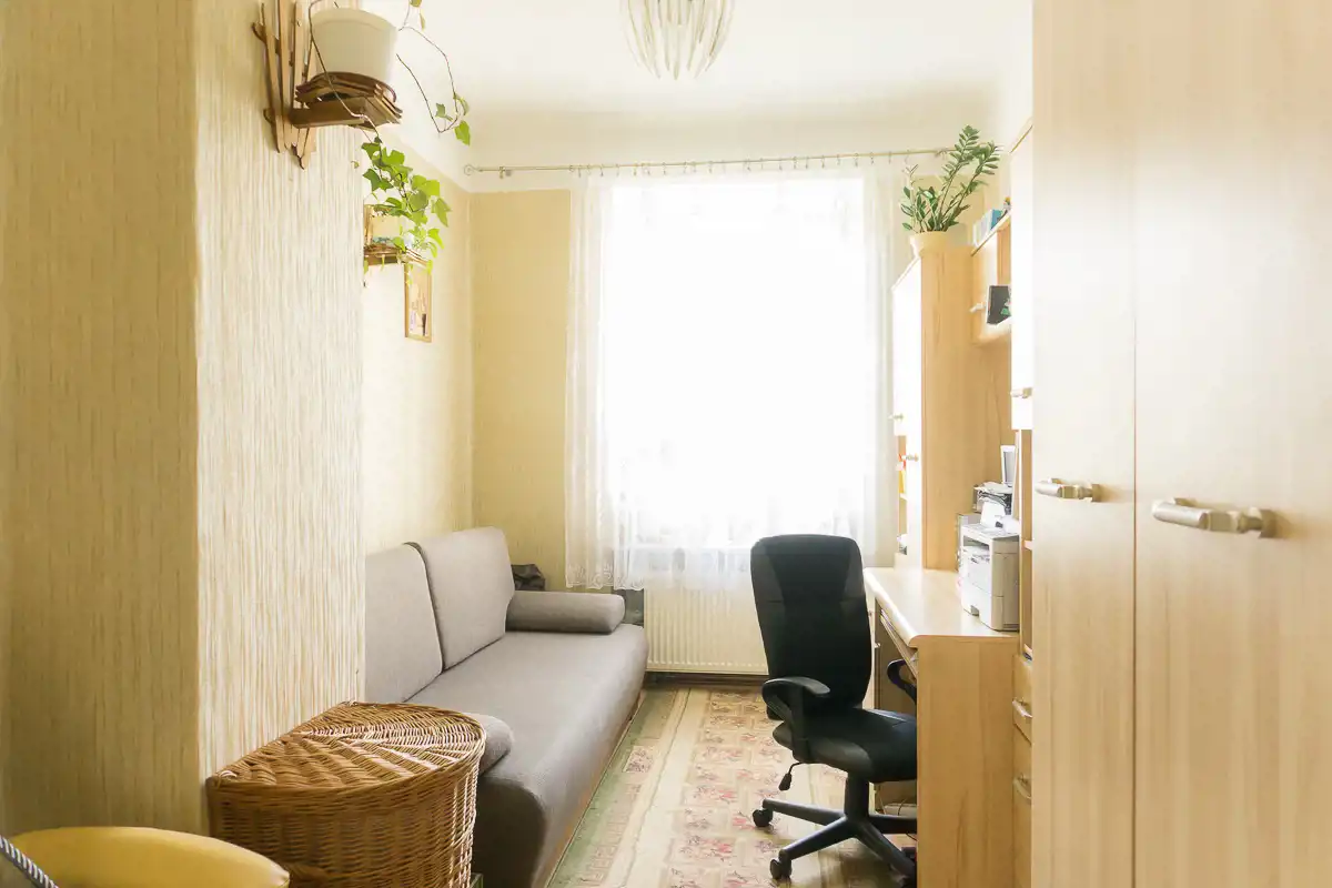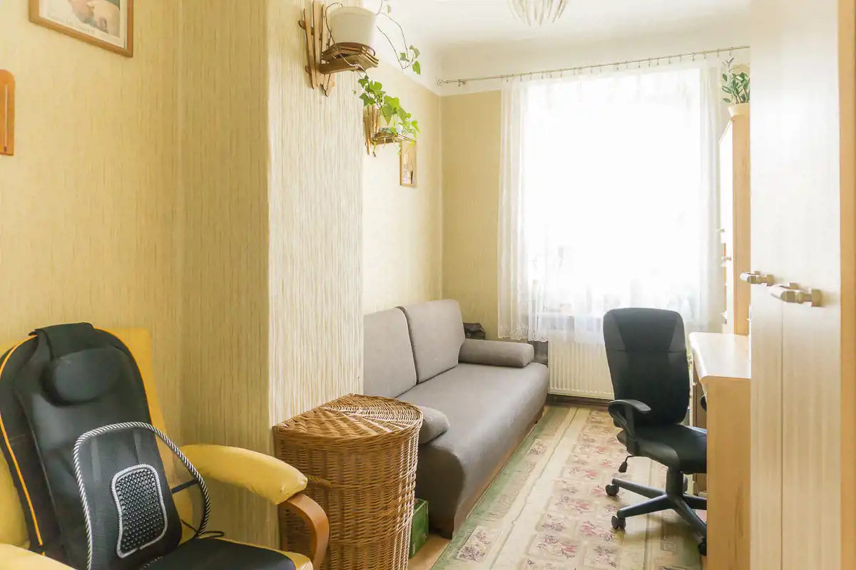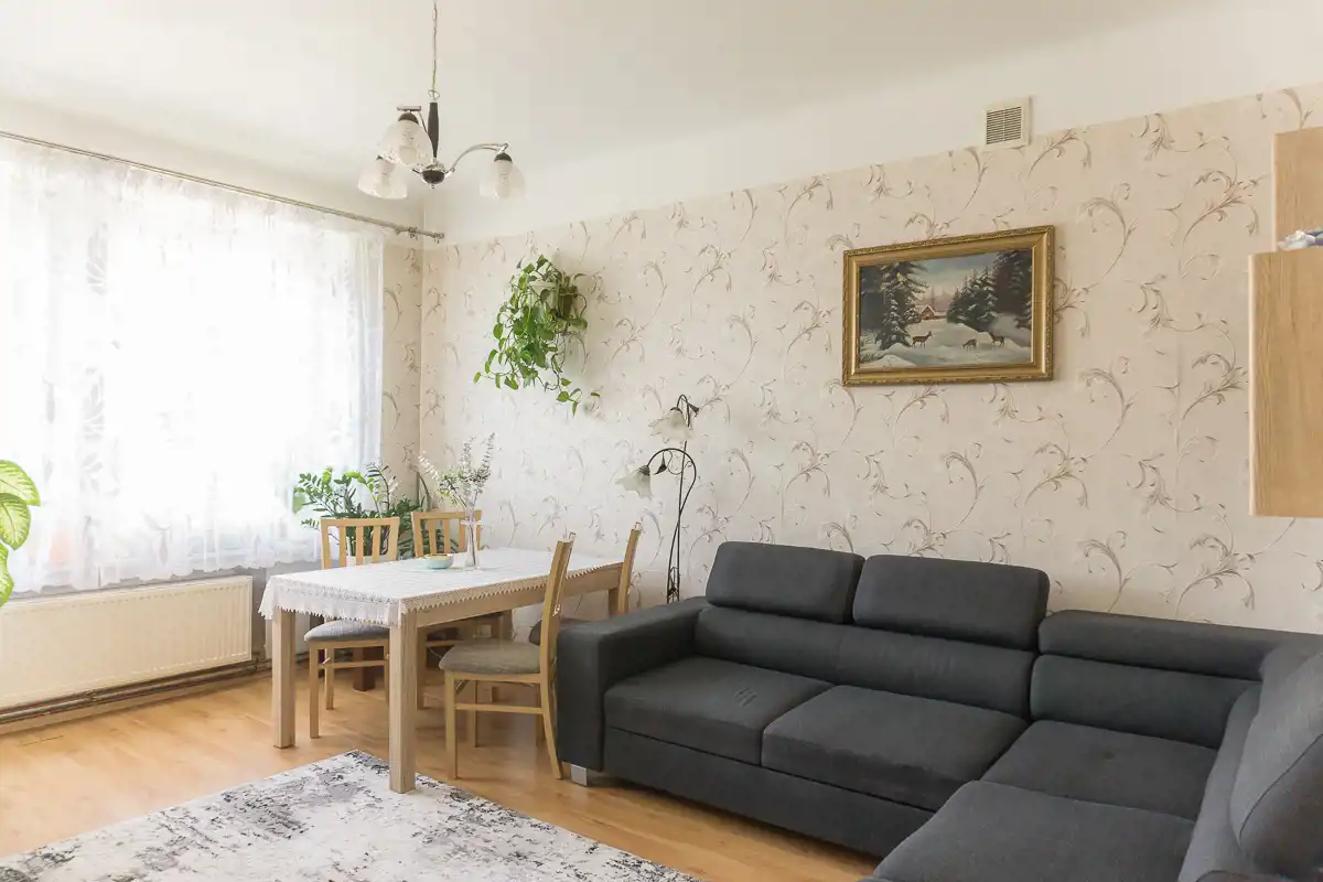 W mieszkaniu pod panelami pozostawiono oryginalny parkiet, instalacja elektryczna miedziana.