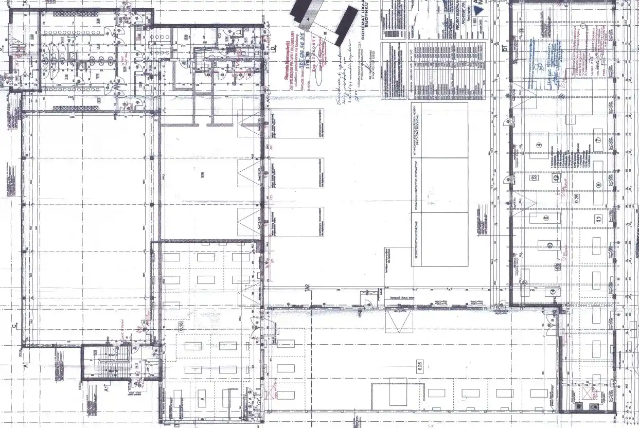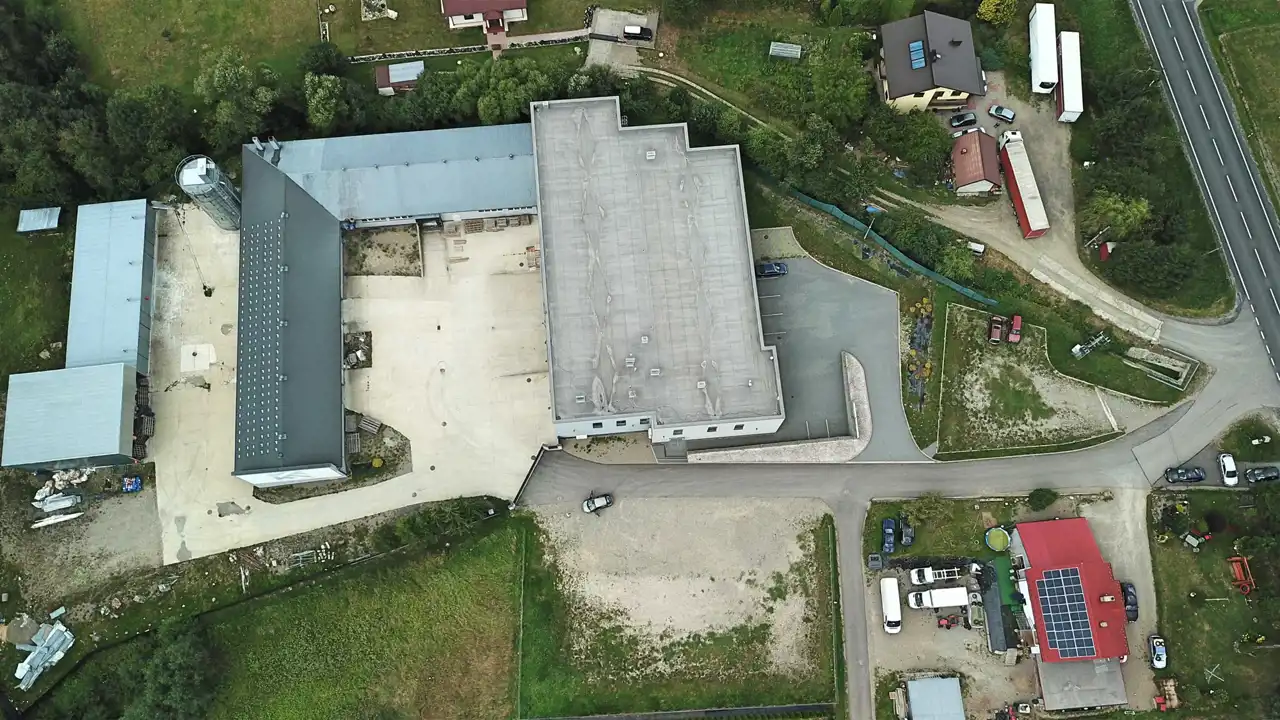 Budynek jedno i dwukondygnacyjny częściowo podpiwniczony składający się z segmentów A, B, C, D. Budynek wykonany jest w technologii tradycyjnej z elementami konstrukcji żelbetowej elementów murowanych, betonowych oraz płyt prefabrykowanych i kratowych dźwigarów drewnianych w latach 90 - tych segment A i B, rozbudowany i zmodernizowany w 2015 roku i rozbudowany o część C i D. Segment A mieszczący produkcję i magazyn został rozbudowany o piętro oraz część biurową w parterze, dobudowano segment C dwukondygnacyjny mieszczący część magazynową, biurową i socjalną, segment B wyremontowano, dobudowano segment D mieszczący produkcję oraz pomieszczenia techniczne. |