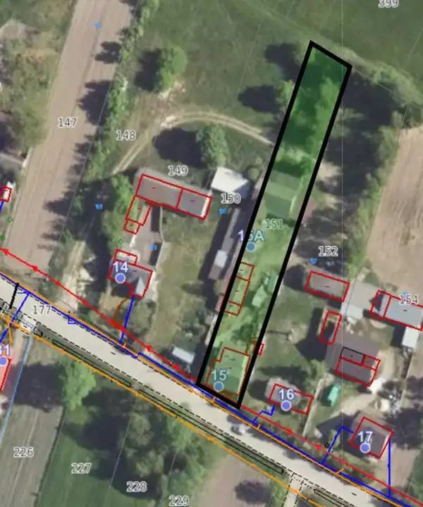 - Dostęp do działki drogami gruntowymi od strony północnej i południowej. Działka o wymiarach od frontu ok. 16m x 193,75.