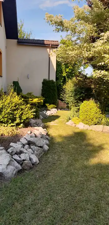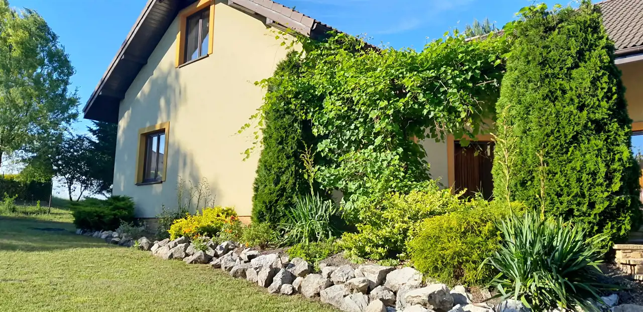 Działka daje wiele możliwości na zagospodarowanie przestrzeni. Można znaleźć miejsce na basen lub mini plac zabaw dla dzieci. W tylnej części działki znajdziemy oczko wodne z rybkami, nad którym możemy się zrelaksować i przyjemnie spędzić wolny czas.