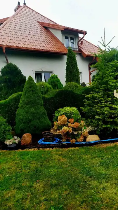 Ogród to prawdziwa oaza spokoju – zadbany, z licznymi krzewami ozdobnymi i kwiatami pielęgnowanymi przez ogrodnika. Cała posesja jest ogrodzona i przygotowana pod ułożenie kostki brukowej.