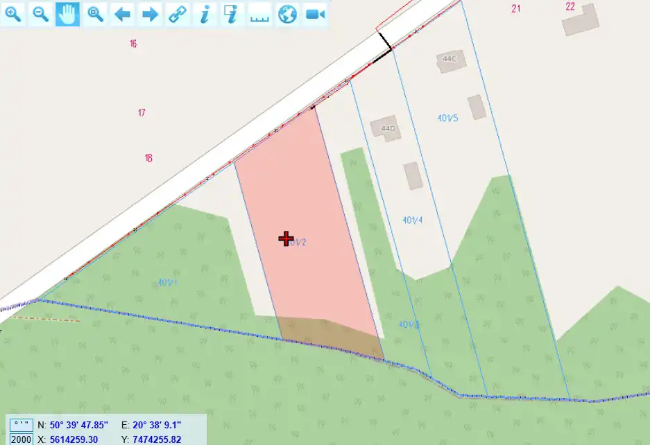 - Media Woda: brak; Kanalizacja: brak; Prąd: w ulicy; Gaz: brak
